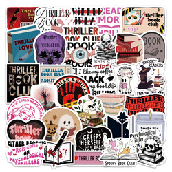 54 Uds. Pegatinas creativas de lectura de libros de suspenso para decoración de teléfono portátil pegatina de regalo de Club de ficción de terror