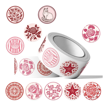 สติกเกอร์ปิดผนึกดอกไม้สีแดงขนาด1นิ้วสติกเกอร์ลายดอกไม้แนววินเทจของขวัญ500ชิ้น