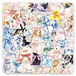 สติกเกอร์กราฟฟิตีรูปสัตว์ติดโบว์ลายการ์ตูนสีน้ำสำหรับตกแต่งขวดโทรศัพท์สติกเกอร์ภาพวาดสัตว์น่ารักนุ่ม50ชิ้น